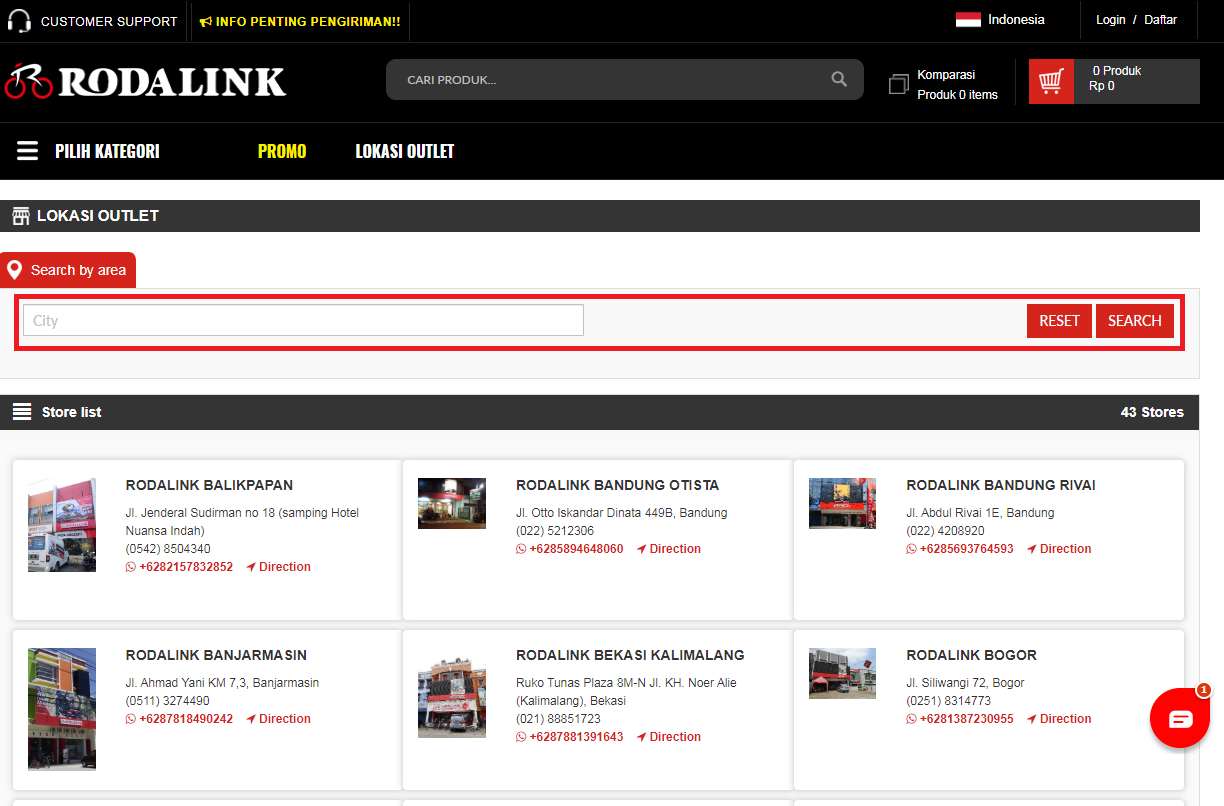 Silakan klik tombol di bawah untuk mengakses halaman lokasi outlet Rodalink.
