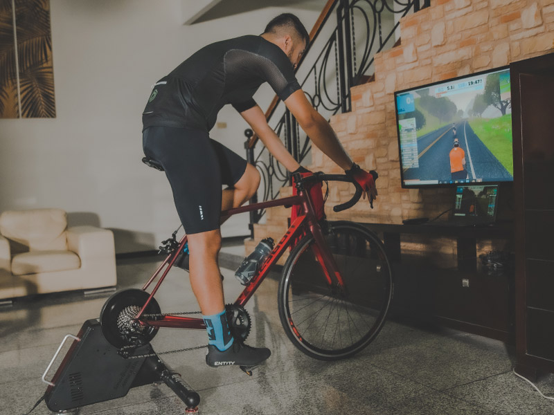 Dengan menggunakan trainer, selain bisa tetap aktif bersepeda, riders dapat melatih stamina dan performa. Menariknya, ada beberapa aplikasi yang menyediakan program latihan bersama secara online, begitu juga dengan kompetisi seluruh dunia. Wah, seru sekali ya! Kalau tidak mau pakai aplikasi, supaya tidak bosan, boleh sambil menyalakan TV atau radio. Kalau kepanasan, boleh pakai kipas angin untuk mewakilkan semilir angin di luar sana deh!