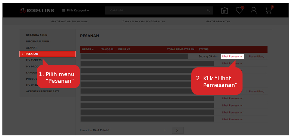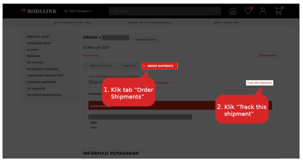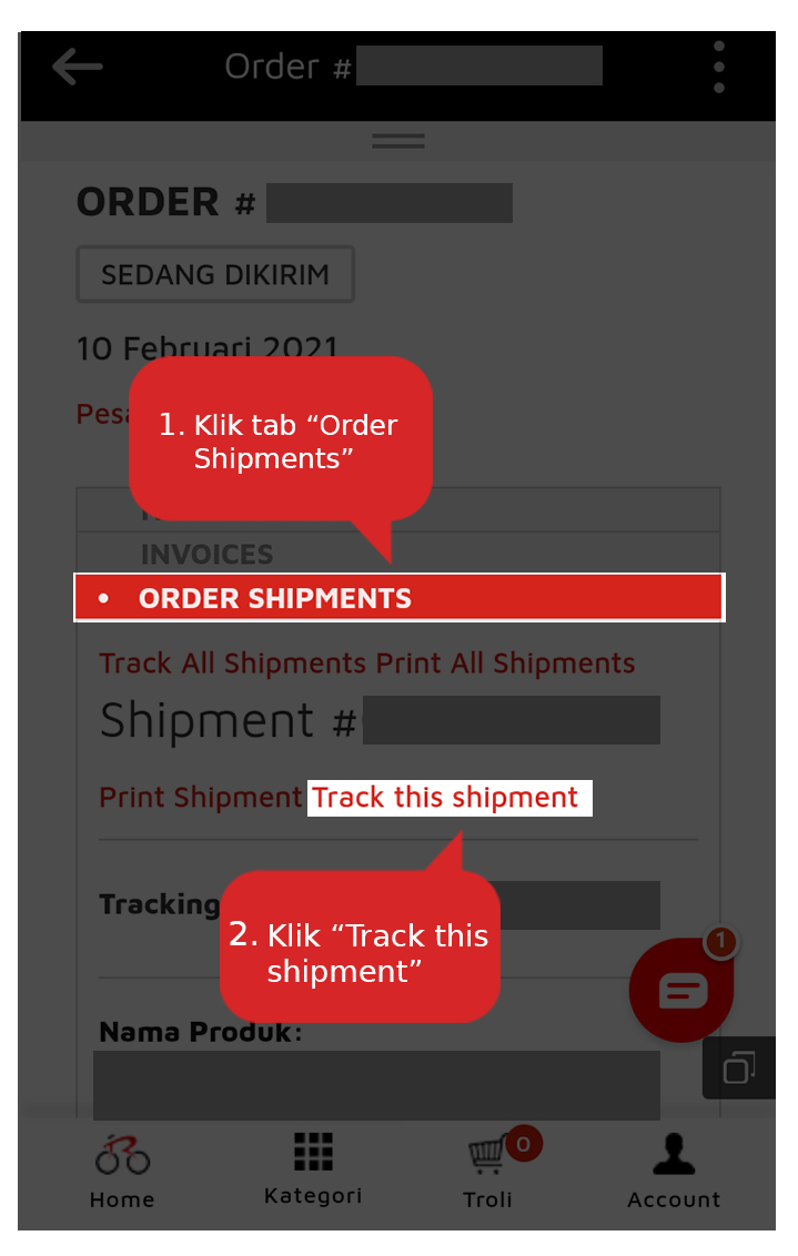 Langkah-langkah melacak status pengiriman sebagai berikut: