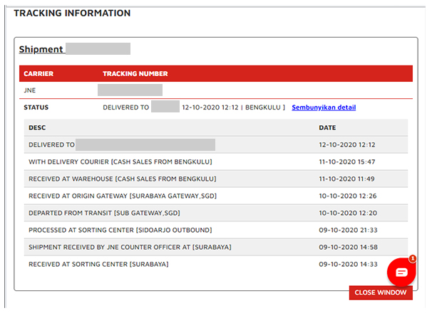 5. Mucul jendela baru “Tracking Information “ pada browser Anda.