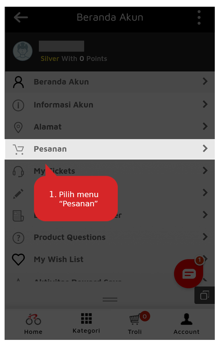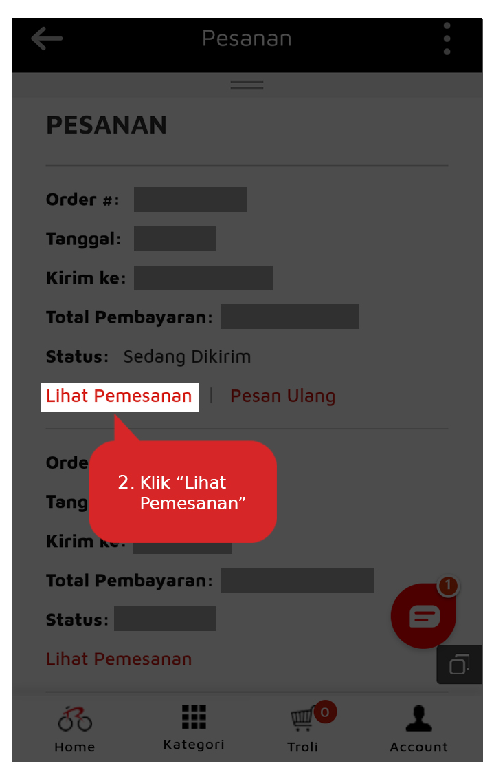 3. Pilih pesanan Anda yang akan di lacak pengirimannya