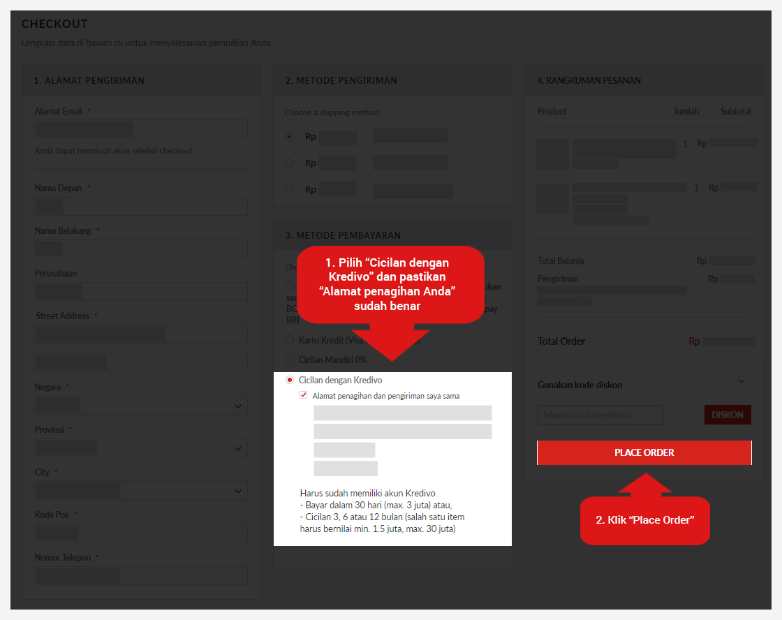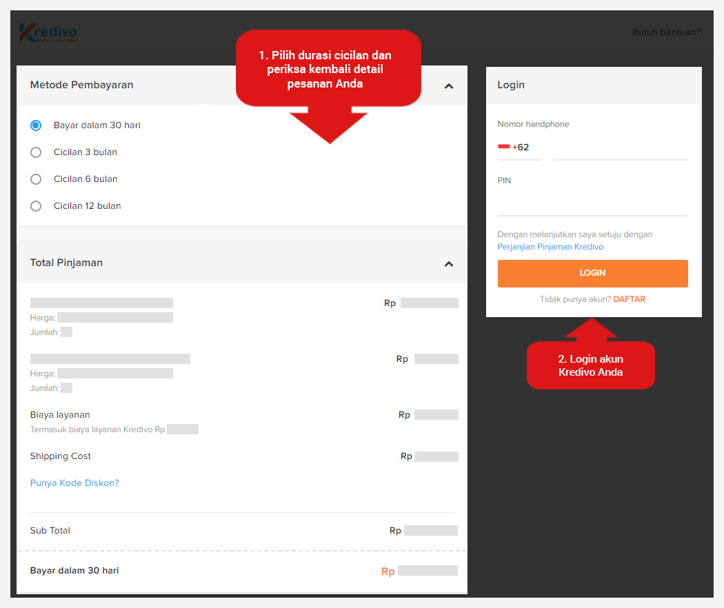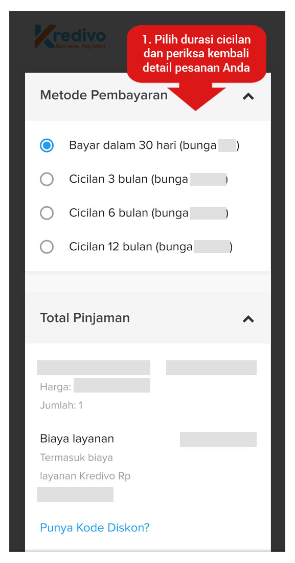 Langkah-langkah pembayaran Cicilan dengan Kredivo: