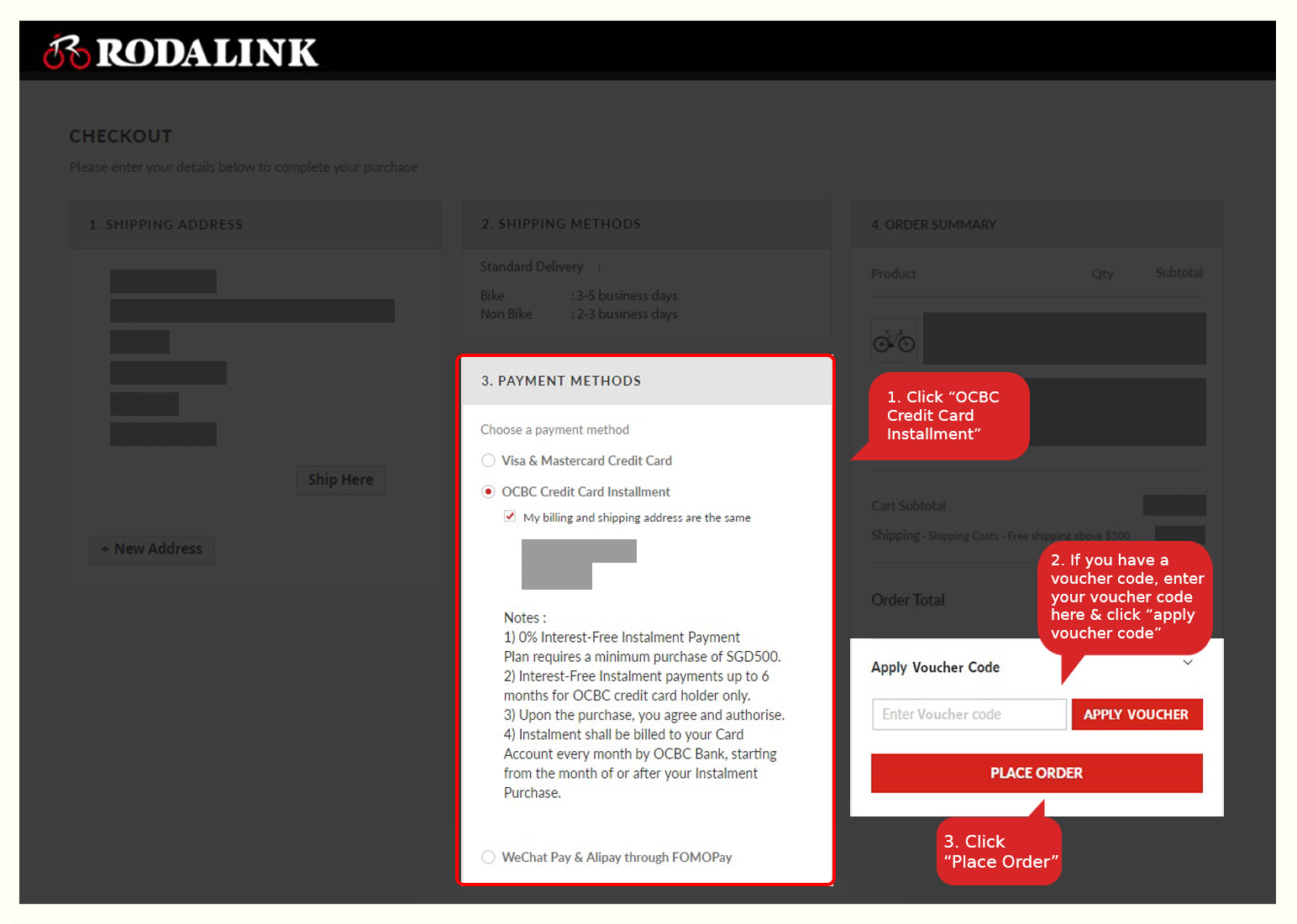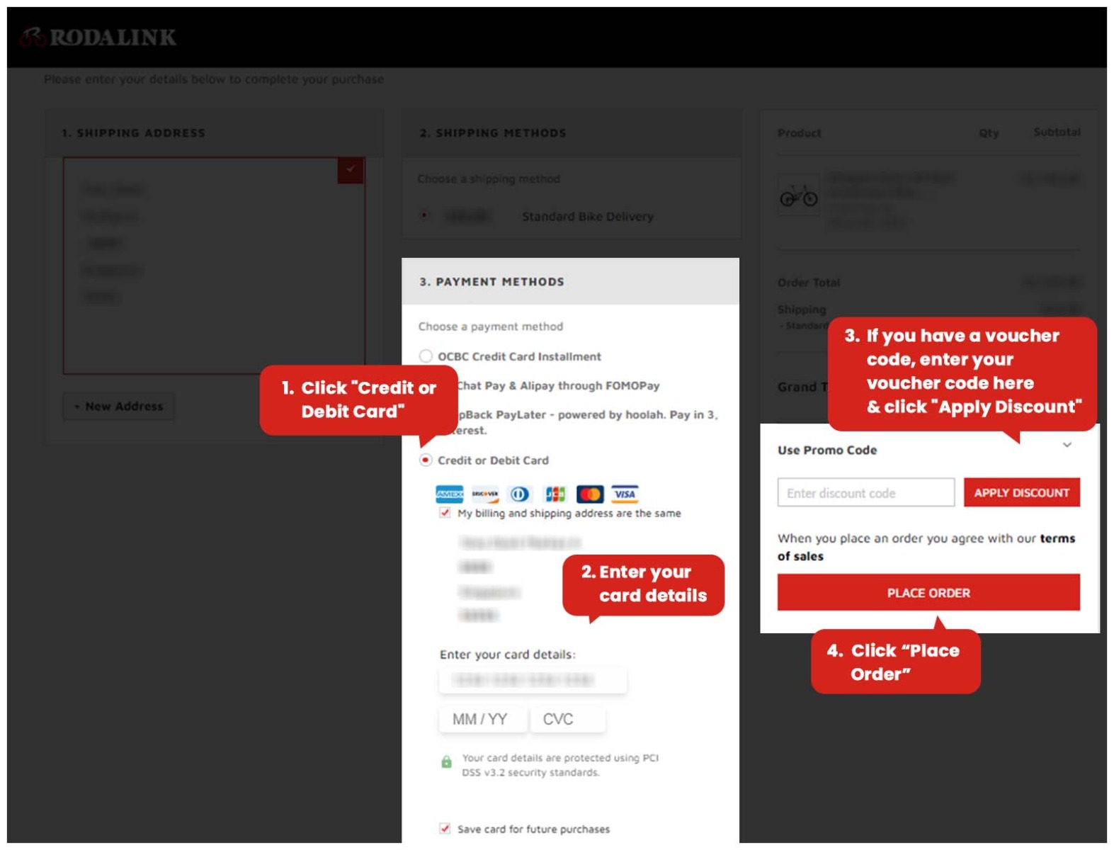For bringing you to the best online shopping experience at Rodalink.com/sg, we offer multiple payment methods as below: