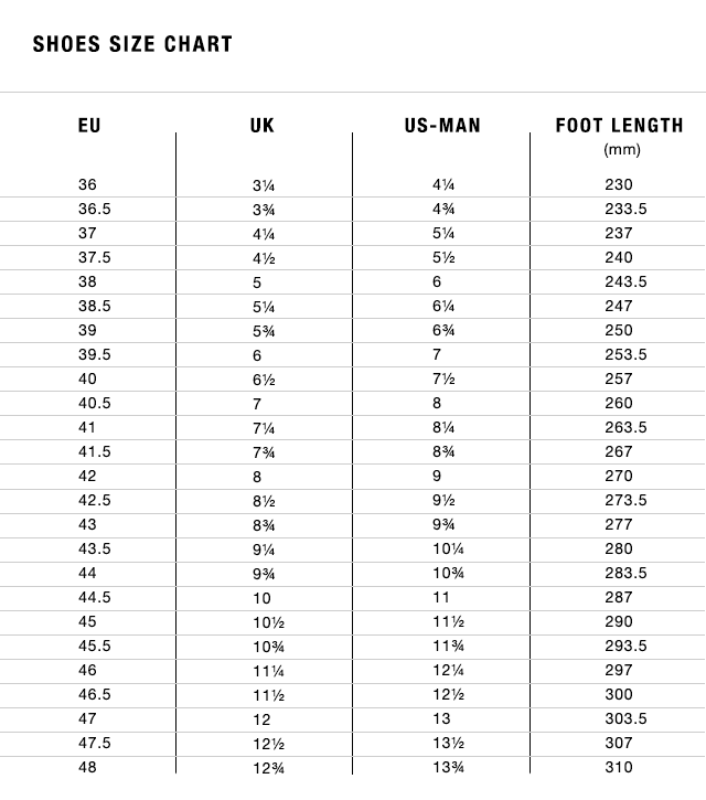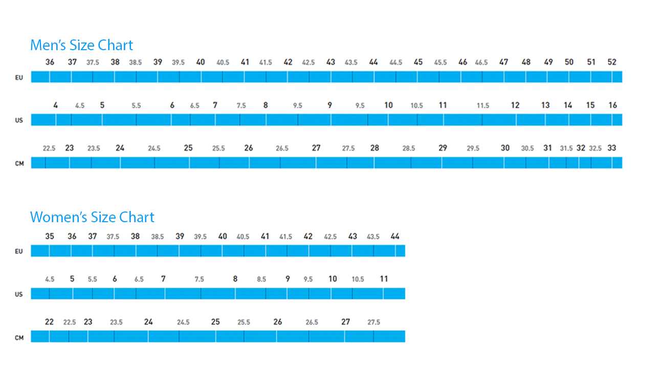 Bike shoes are sold in either U.S. or European sizing depending on the manufacturer.